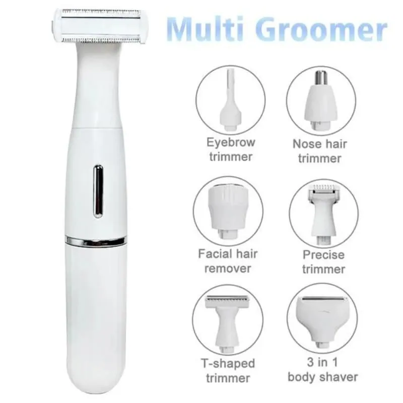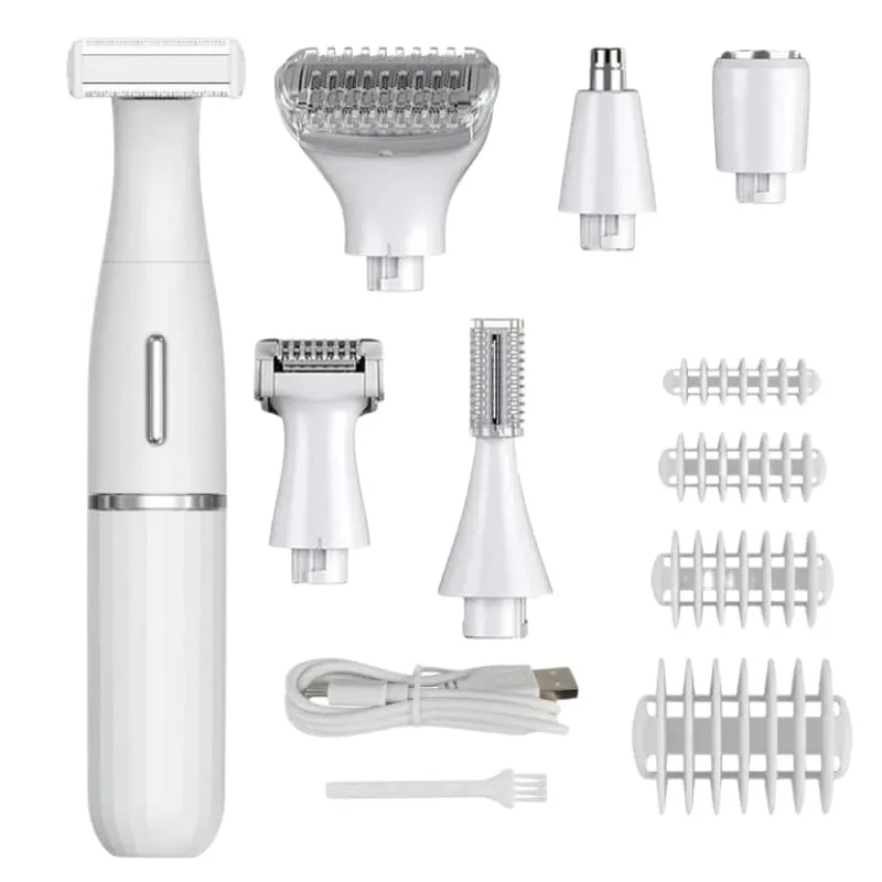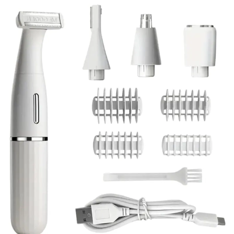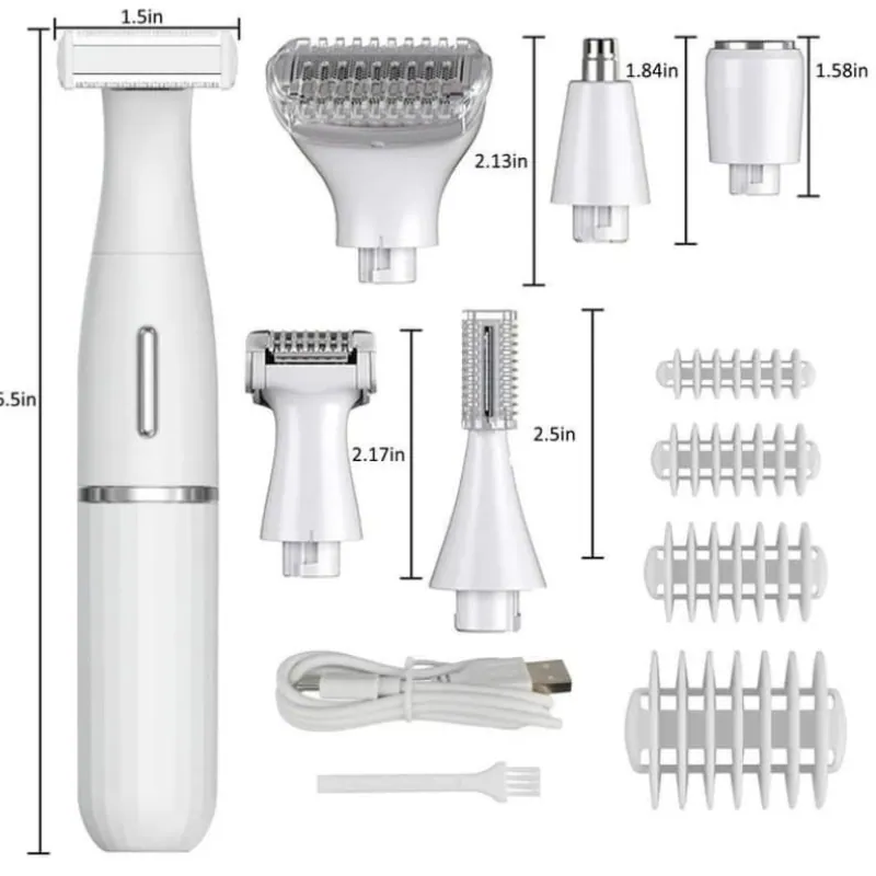 - Four interchangeable blades for full-body grooming.