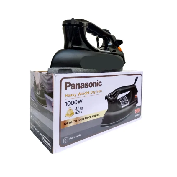 The Panasonic Heavy Weight Dry Iron SM-333 is built for powerful and efficient ironing. With its 1000W heating power and heavy body design, it delivers superior pressing results with minimal effort. The iron features a non-stick soleplate that glides smoothly across fabrics, ensuring even heat distribution and wrinkle-free clothes. Its durable build, comfortable grip, and reliable heating make it an excellent choice for both daily and heavy ironing tasks.
