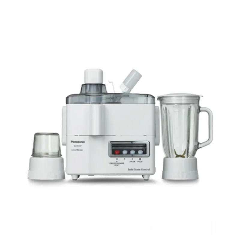 The Panasonic Juicer Blender 3 in 1 MJ-M176P is a multifunctional kitchen appliance designed for maximum convenience and efficiency. With its 240W motor and stainless steel blades, it can handle juicing, blending, and grinding with ease. This model comes with a large blender jar, a dedicated juicer, and a dry mill attachment, making it perfect for preparing juices, smoothies, sauces, coffee beans, and spices. Compact yet powerful, the MJ-M176P is a reliable all-in-one solution for everyday cooking.