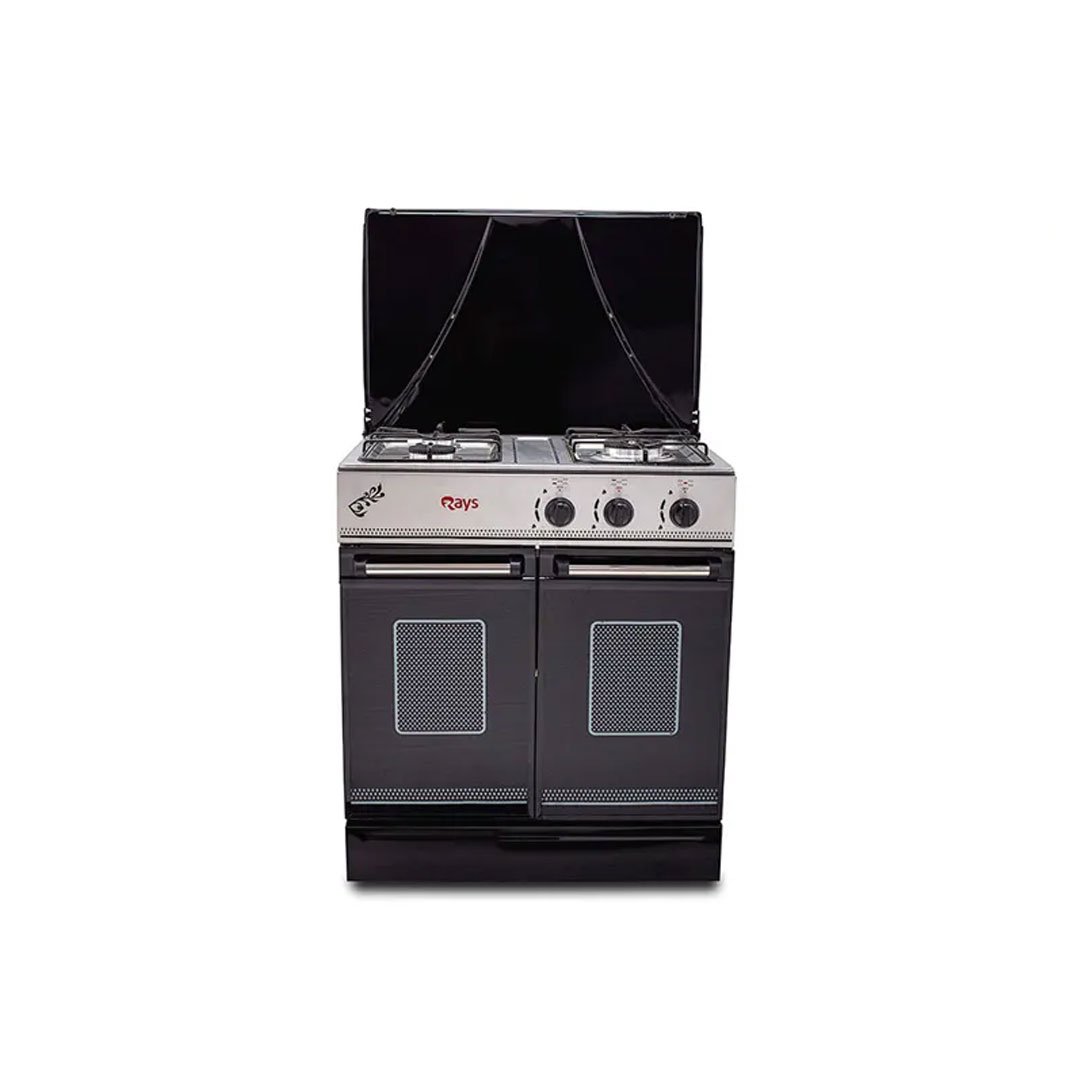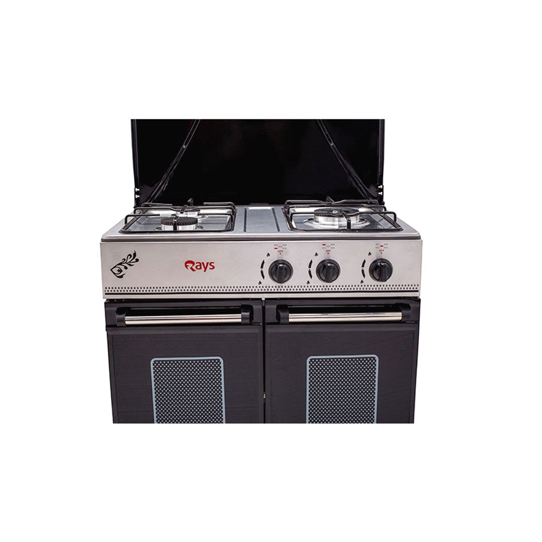 - 3 Burner Gas Cooker: Includes one large, one medium, and one small burner to accommodate diverse cooking needs.