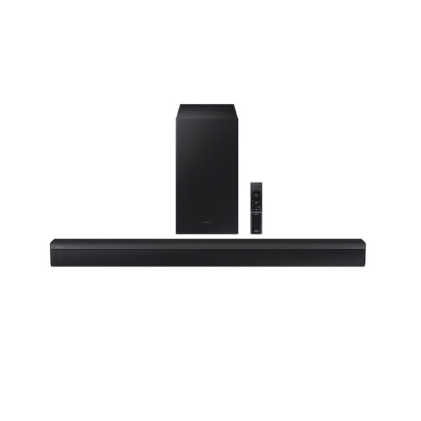 The Samsung HW-C450 offers a premium audio experience with its powerful output and advanced features. Whether you’re watching movies, playing games, or listening to music, its DTS Virtual:X and Adaptive Sound Lite technologies ensure clear and immersive sound. The wireless subwoofer adds depth to your audio without the hassle of cables, and its sleek design complements any home décor.